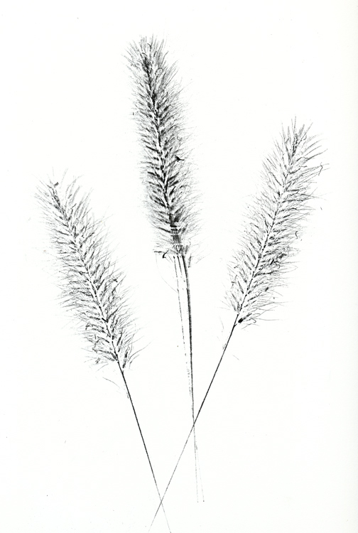 Here's my second try at some grass seed heads. The first cut was pretty good until I tried to press the grass leaves--too straight and boring. The center stalk here was a bit of trouble and it looks like I rubbed it in one too many times. All in all, this pressing came out even better than I had envisioned. Cool.